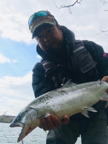 今期3尾目の59cm 2.2kgと1尾目より小ぶりでしたが、かなり元気なサクラマスでした。