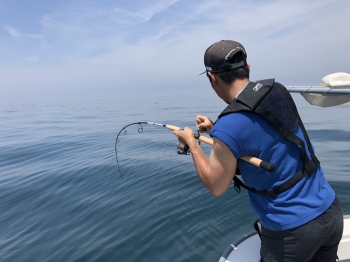 ギュッと集中してタコ釣りを楽しんだ後は、いよいよ本命の青物の潮が流れだします。