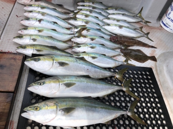 当日の船長の読みでは昼前の時合が本命で、朝のうちは難敵の鹿の瀬ハマチを攻略してくださいとのこと。