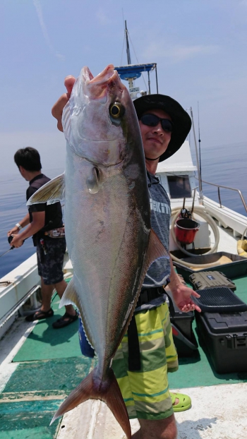 慎重にやり取りして上がってきたのは、4~5キロクラスの本カンパチ。ひとまずゲットで一安心。