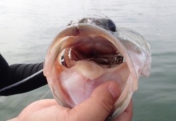 回収中にチェイスがあったので、狙いを表層に変えて、細かいピッチでアクションを加えているとボート手前でバイト!