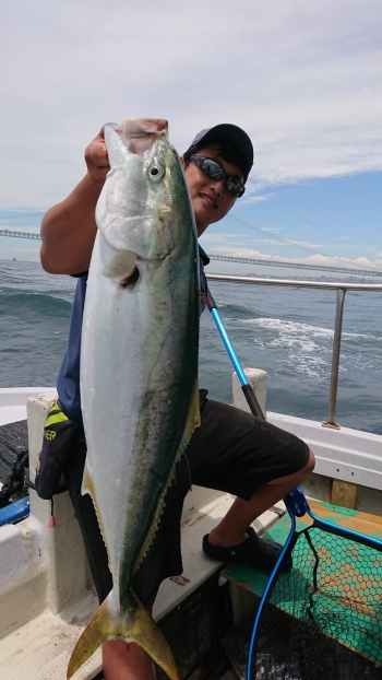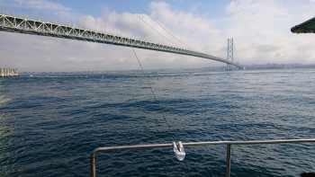明石海峡大橋を望む海峡部で次はブリ狙いのジギングです。