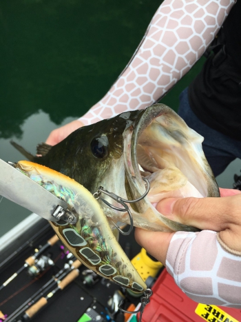 私は羽モノ、中川は8インチスティックベイトでのゴミ打ちからスタート。