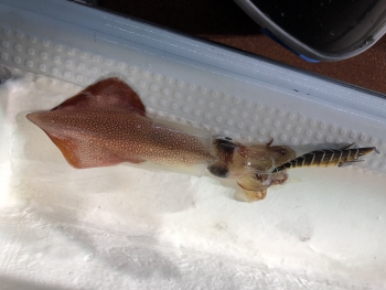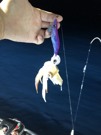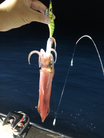 明るい時間帯は釣果がなかったものの、漁火の点灯とともにベイト感度も出てきて、そこからはラッシュタイム突入!