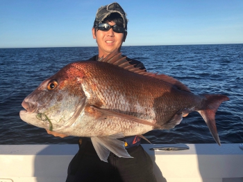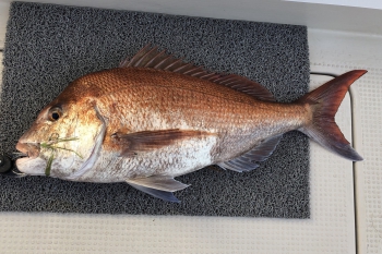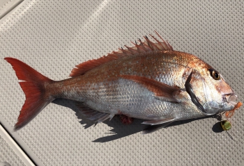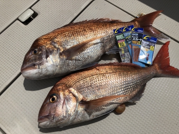 しかし同船者がオレンジ系のネクタイでマダイを釣り上げたのを見て、すかさずチェンジネクタイストレートオレンジカラーに変更すると