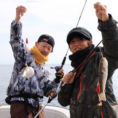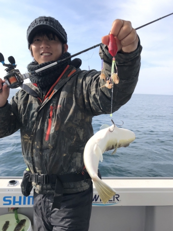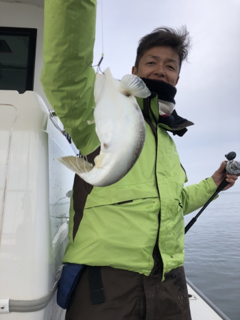 予想通り高活性のようで、30分程度、船中大盛りで大型のショウサイフグが次々と揚がります。