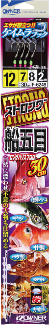 水深は40m前後でオモリは40号、仕掛は4本ばりで、棚を探り易い『ストロング船五目』を使用します。