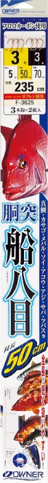 この仕掛は、中型~大物魚にもしっかり対応出来る太ハリスの仕掛で、全長2mで枝間(ハリスの間)が50センチと、棚を探りやすい設計となっております。