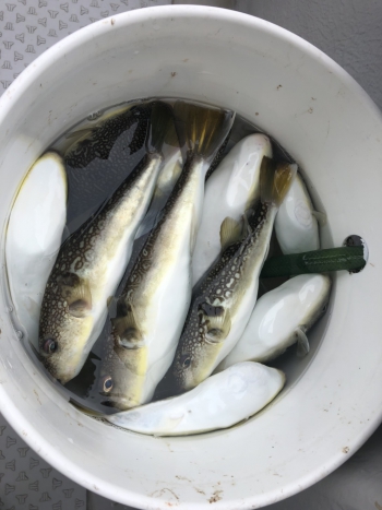 後半になって判明したのが、トラフグやハマチがポイントに回遊してきていて、ショウサイフグが怯えて活性が下がってしまったことが原因でした。
