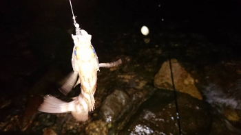 常夜灯下で一度だけライズがあったのでできる限り、水面直下をゆっくりひいてみます。