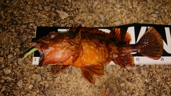小さいですが、藻着きの黄金メバルです。