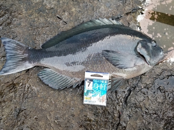 久しぶりに引っ手繰るアタリに喜びを感じながら、足元から張り出す沈み瀬をかわし浮かしてきたのは、50cmを越える良型の尾長グレ。
