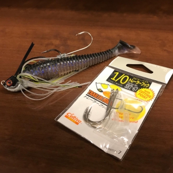 今回も、何度も引っ掛かりましたが、ロストはゼロでした。その反面、魚がバイトしてきた時に、フッキングが決まらず、すっぽ抜けやすくもあります。すっぽ抜けを防ぎ、ショートバイトも捉えるためにもトレーラーフックを使用しました。
