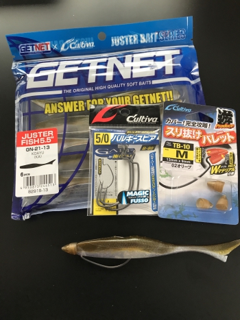スリ抜けバレットをセットしたジャスターフィッシュ5.5″の2.7gのネイルリグ