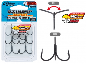 また、ショートシャンクで、フックの重量も同サイズのST-36シリーズ、STX-38よりも、軽く設計しています。今回のようにフックサイズを上げても、ルアーアクションを損ないにくく、フック同士の絡みも少ないです。