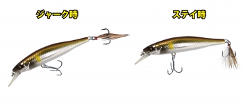 STY-35MFは、150°/105°/105°に設計した角度のため、ハリ先がルアーボディーからワイドに出るのでショートバイトでも拾いやすいです。ルアーボディーにハリ先が干渉もしにくいので、シャープな状態を維持できます。