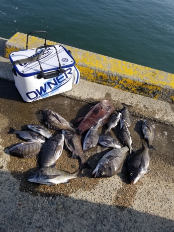 話を戻しますが、1匹目がヒット直後、しばらくして再びチヌを釣り上げることができ、時折、コブダイにブチ切られたりもしました。