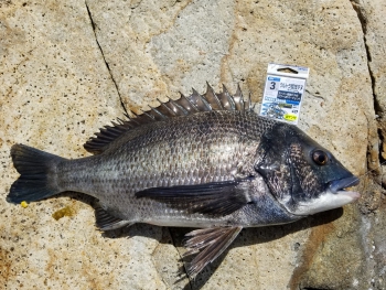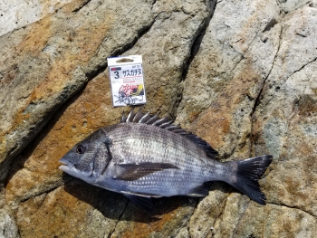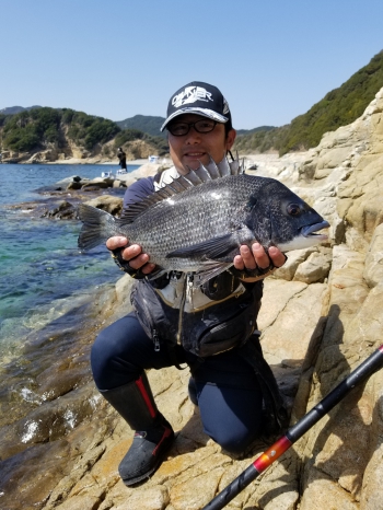 コブダイのようなえげつない引きでなく、竿先をゴンゴンと叩くパワフルかつシャープな引きで楽しませてくれたのは、本日最長寸の47~8cmのチヌでした。