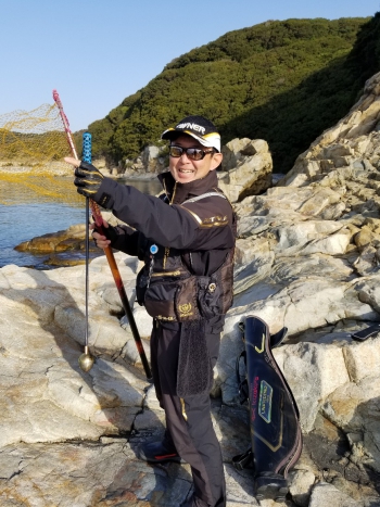 今回のメンバーは、社長の中道、Kさん、オーナーばりフィールドテスター北条公哉さんも現地で合流し、4名で磯上がりしました。
