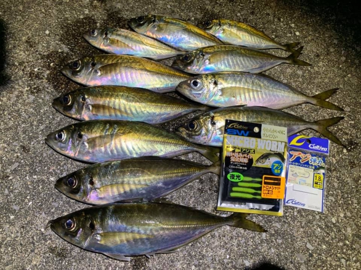後半、何とかアジの居場所を見つけてタイムリミットの24時までに10匹を目標に頑張りました。
