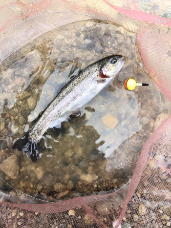 仕掛:管釣マス玉ウキ、忍ヤマメ、糸付快釣マススレ、M級目印、ザイト渓流フロロ