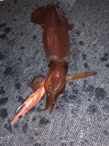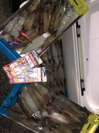肝心なこの日の釣果の方も漁火点灯後から、終始ポツポツイカは乗ってきました。