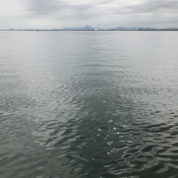 どのポイントも前日までの雨の影響で水が濁っており、さらにこの日は、風もほぼ吹いていません。ベイトもどこかへ大きく移動してそうでしたし、このままランガンを続けるよりも、水が動いているポイントに移動して、そこで粘ることにしました。