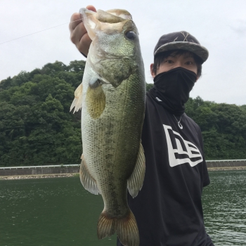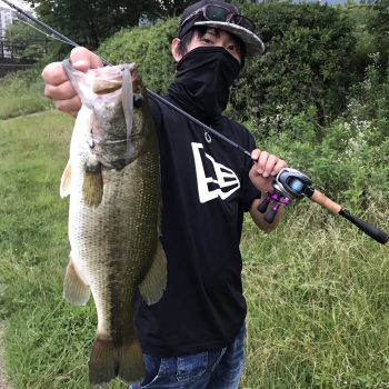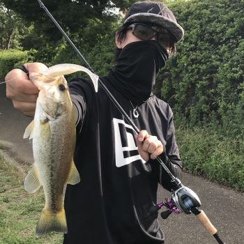 シンカーの重量を5~7gに変更して、よりスタック感を意識して狙ってみると、アタリがあり、1匹目と同サイズのデカいバスがかかりました。
