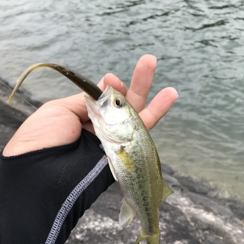 ワームをジャスターフィッシュ4.5″にサイズアップしてみても、小バスしか釣れません。