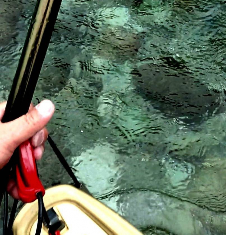 しかし全く反応はなく、魚が走る姿も見えませんでした。深みの底でじっとしている魚が浮びました。