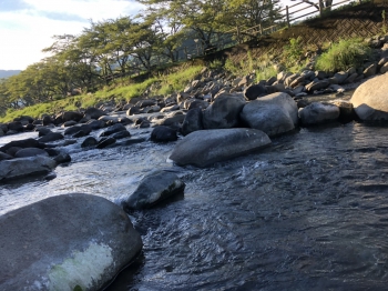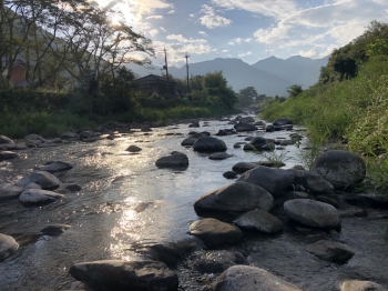 このままゆっくり過ごすのも良かったのですが、折角なら贅沢に涼しい川辺で夕涼みでもと思い立ち、30分ほど車を走らせ近くの川へ入ります。