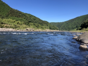 渓流相の川相と透明度の高い水に住む鮎は人工と湖産の17~20cmがメインの完全放流河川。
