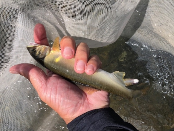 オトリ鮎2匹、野鮎さま一匹すべてヘロヘロ。