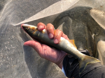 またまた慎重にネットインしたのは20㎝くらいのオトリごろ!!!