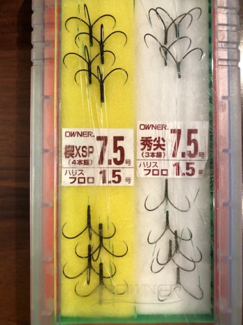 大きなアユを妄想して仕掛けも少し強めを用意、複合ライン(金属と新素材の掛け合わせ)0.06号とフロロの0.2号、ハリも掛かりの良さ重視の”一角“と”楔XSP“、バラシも心配して”秀尖“をそれぞれ7.0号と7.5号の3本、4本を用意。