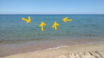 30mほど沖に波の立ち方が違うところがあったので、海底の地形に凹凸があると予測してまずこの周辺を探ります。