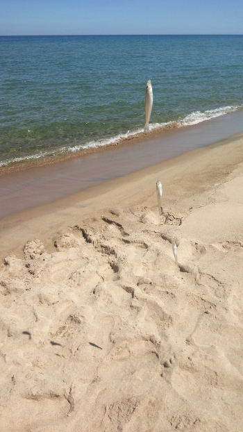 空いているところを探して気高町の漁港脇の砂浜に入りました。