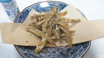 中骨は少し高めの温度で素揚げにして塩をまぶしてやると最高の酒の肴になりますよ♪