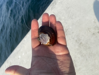 まずはタンコブゲーム用の置き竿をセットし、エサ取り対策として虫ヘッドパワー2gをアケミ貝の中に入れ、アタリを待ちつつジグで青物を狙いますが、ジグに反応するのはエソのみ。