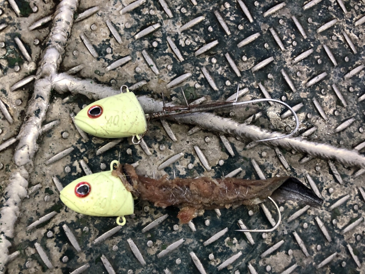 またこういった低活性時にはサンマエサとイワシエサの使い分けやグロー→ゼブラグロー→部分グロー→無発光とテンヤカラーのトーンを徐々に落としていく必要があります。