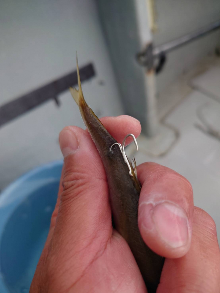 この日は開始早々からアタリがあり、無事フッキング!上がってきたのはエソ。