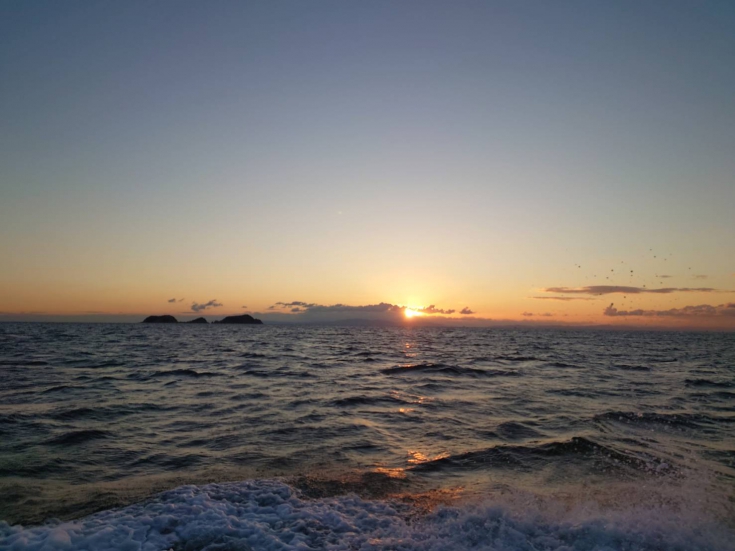 出船しまず目指すのは餌を販売している漁師さんの港。ここでアジ(イワシがあればイワシ)を購入し、いざポイントへ。