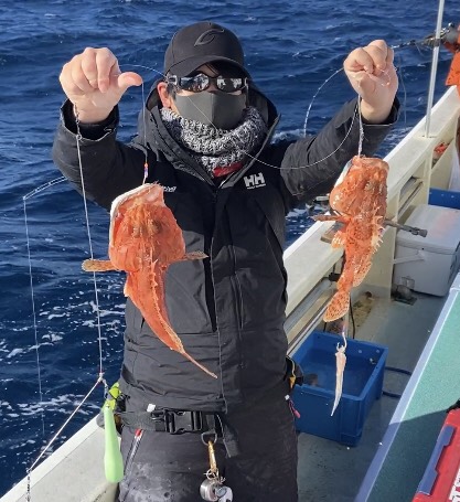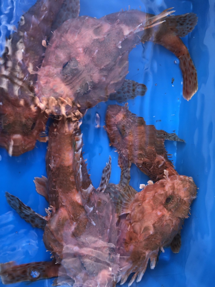 また、オニカサゴは上から落ちてくるものに特に反応するので、時折10mほど仕掛を上げて、落とし直すのも効果的でした。