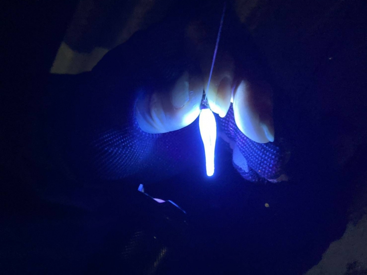 UVライトでキンキンに蓄光してリグのトレースコースを確認しながら釣りをしていきます。