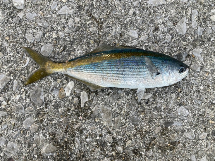 糸が風でふけるので実際どうだったかは分かりませんが、コッと小さなアタリが。