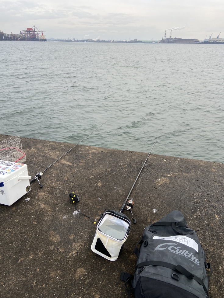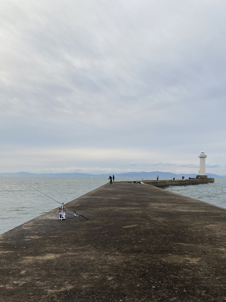 2時間ほど経っても反応がないため、波止の根本付近はどうだろうと15分ほど歩いて様子を見に行きましたが、投げ釣り師の方に話を聞いてもさっぱりとのことでしたので、大人しく元の位置で竿を出すことに。