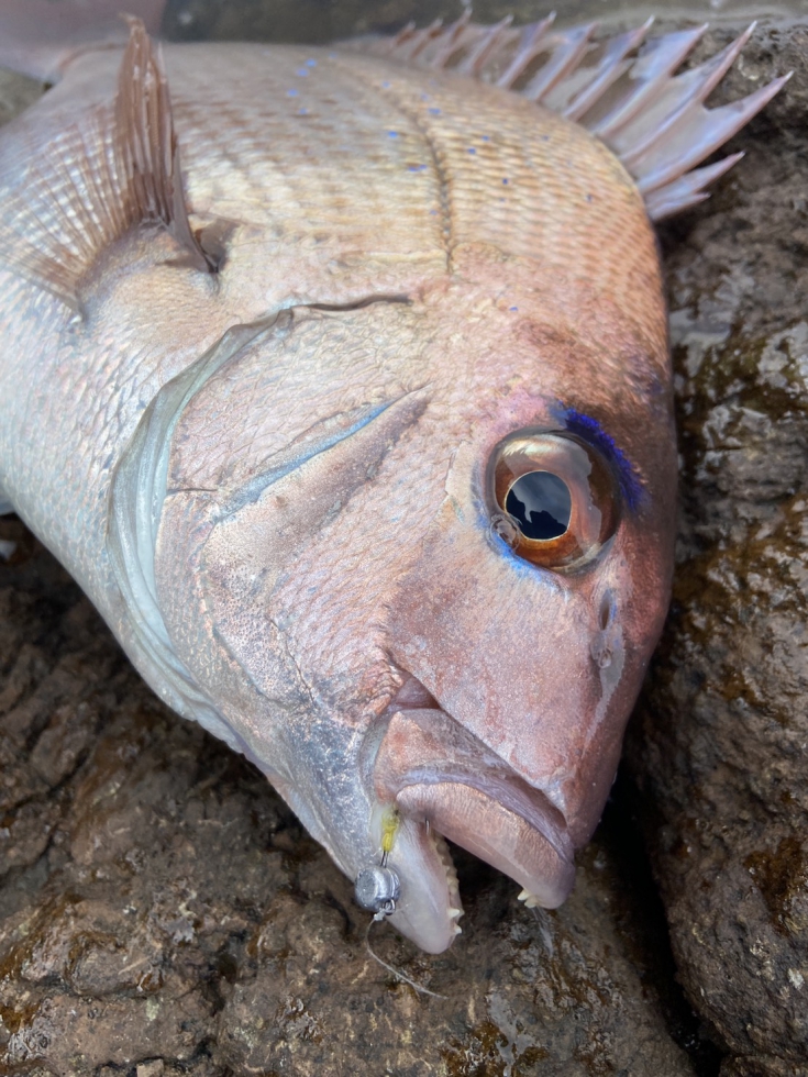 よく走り、よく引いたのでグレかと思っていると、姿を見せたのはマダイ。