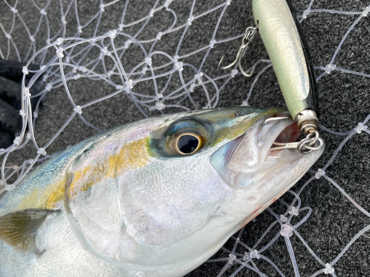 フックをリアにも装着することで、フォール時に水平姿勢を保ちやすくすることで喰わせの間を与えてのヒットでした。