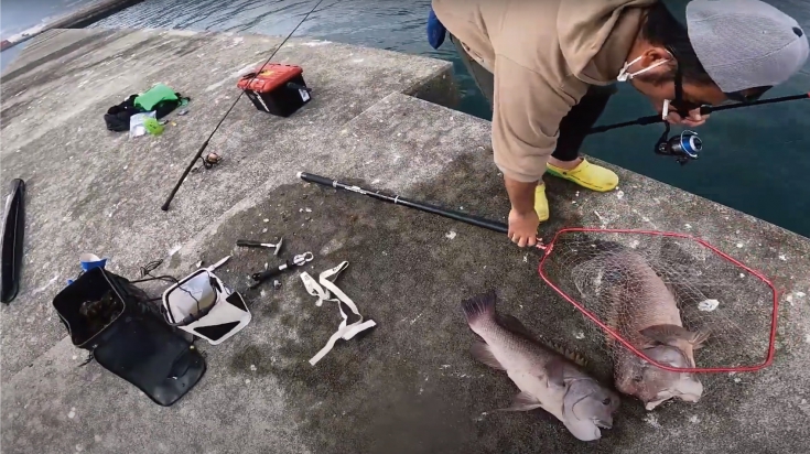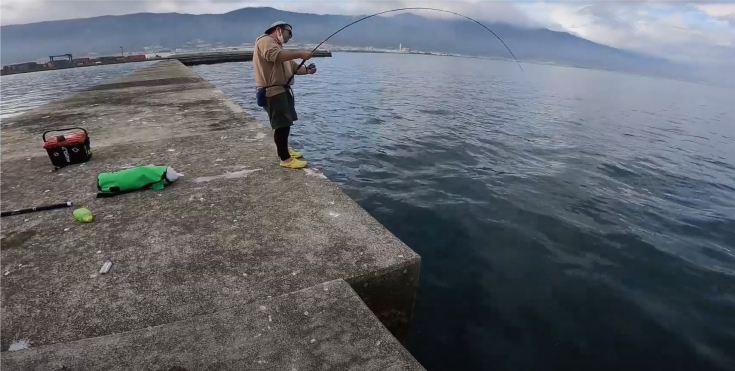 今回選んだ釣り場は、下見で釣果が良かった愛媛県川之江町の金子防波堤。