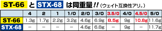 今春ST-66シリーズの新号数に3.5/0(約8g)と4.5/0(約10g)がリリースされました。